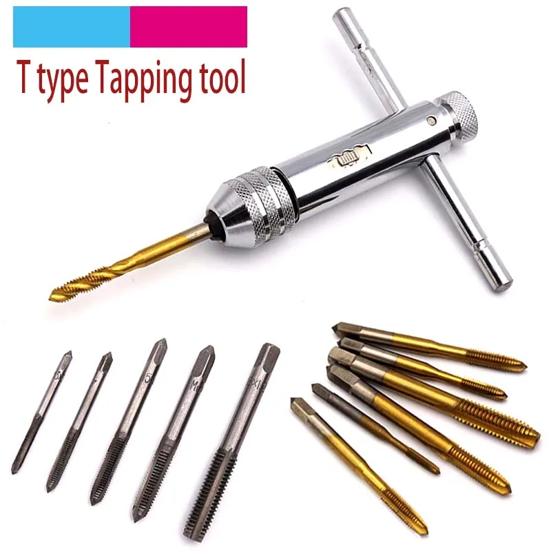 Регулируемый гаечный ключ с трещоткой, ручной инструмент с Т-образной рукояткой, для резьбы, метрических заглушек, метчиков