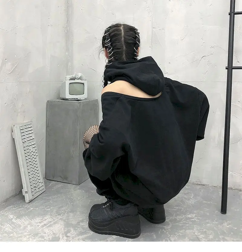 Женская толстовка, толстовки, Толстовка Оверсайз для женщин, воротник, длинный рукав, повседневные Черные толстовки, женская мода, новинка, harajuku