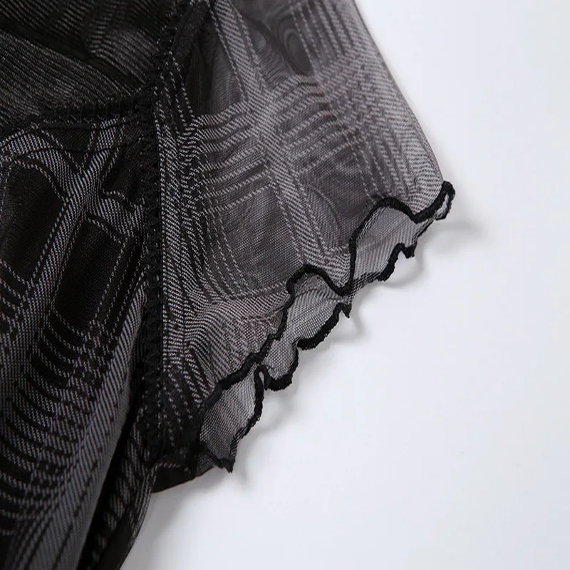 Y2K EGIRL E-girl эстетичное клетчатое Сетчатое черное платье с прин...