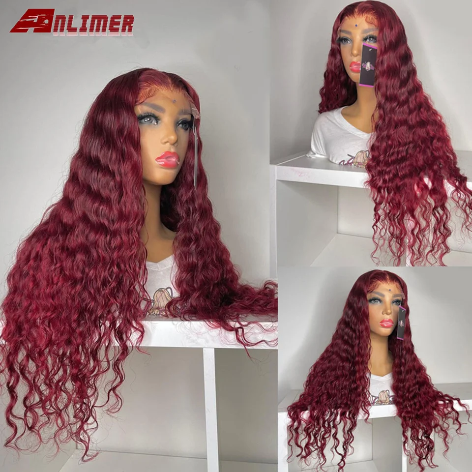 Парик из натуральных бордовых волос 99j, волнистые волосы, 13x4, с предварительно выщипанными детскими волосами вокруг бразильского Реми, красный, кружевной фронтальный парик из натуральных волос