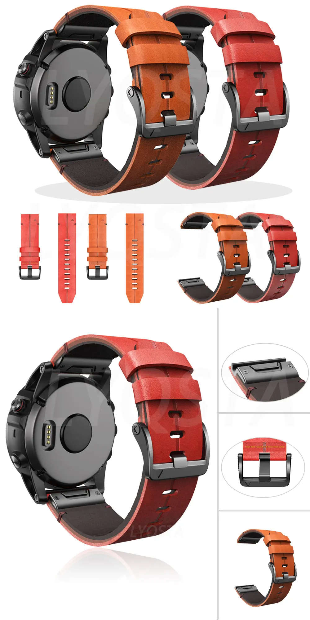 Ремешок из натуральной кожи для наручных часов Garmin Fenix 6X 6 5X 5 3HR 945 935
