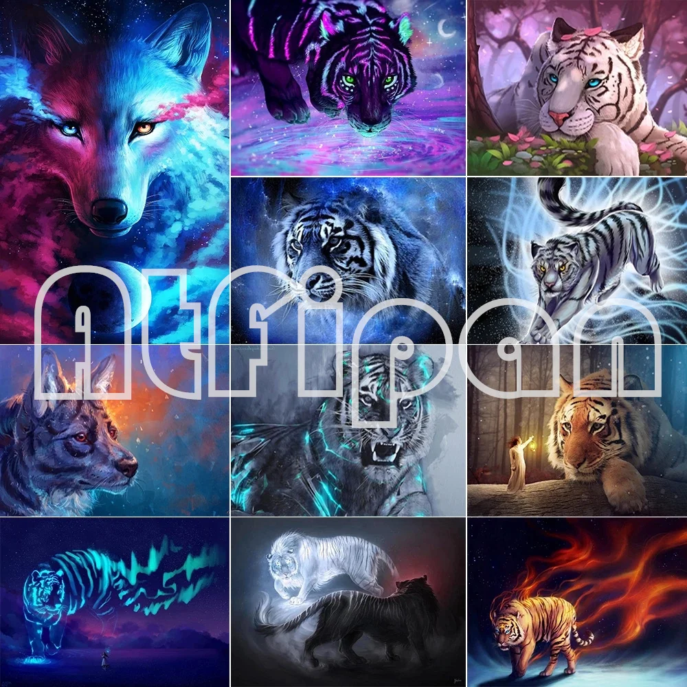 Алмазная 5D картина с флуоресцентным тигром, полноразмерная круглая инкрустированная стразами, вышивка сделай сам, живопись с животными, вышивка крестиком
