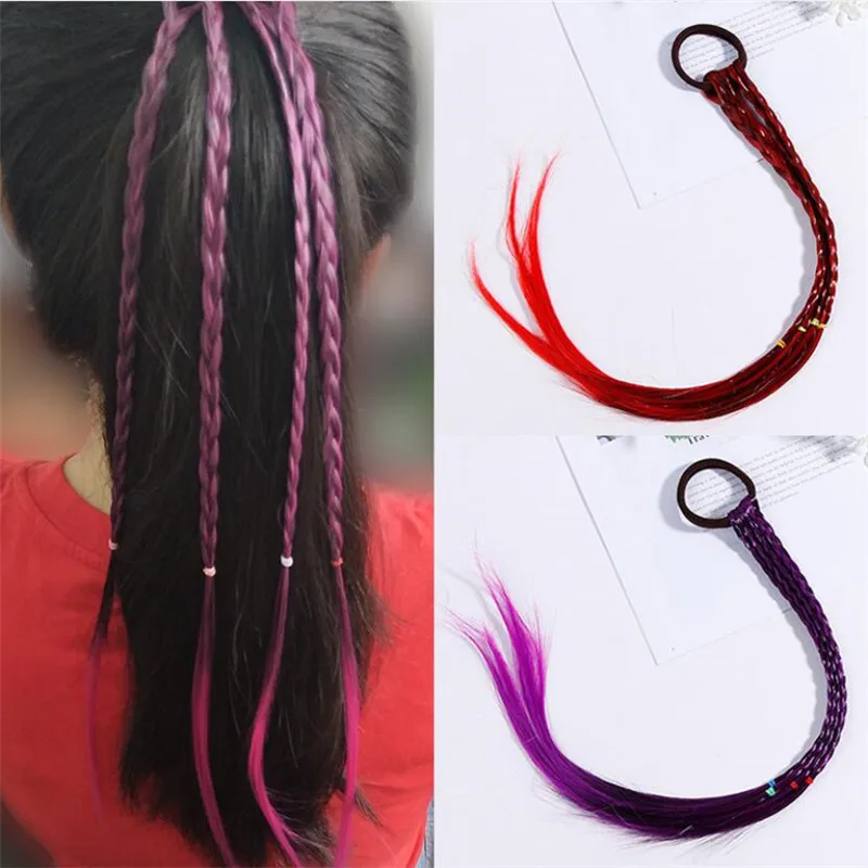 Красочные парики для девочек, хвост, искусственная резинка для воло...