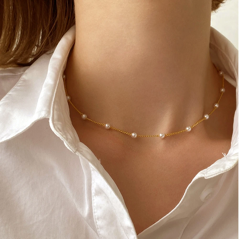 Женская цепочка на шею с подвеской из бусин, чокер золотистого цвета с жемчугом в стиле K-POP, украшение для шеи, воротник 2021