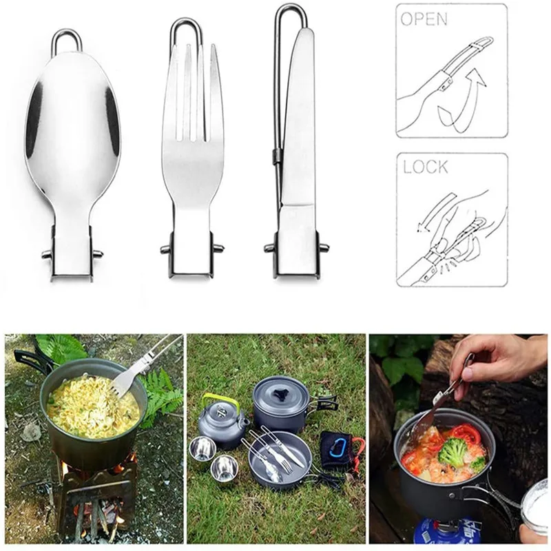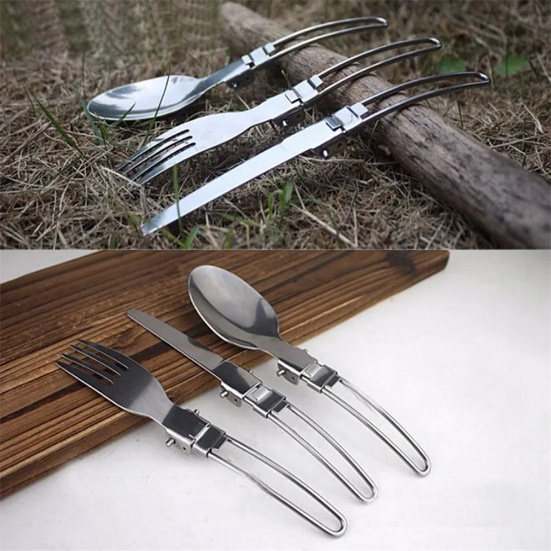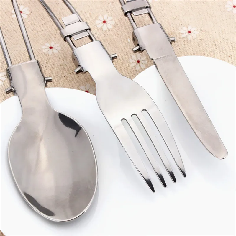 3 шт.компл. уличная посуда для пикника из нержавеющей стали складная вилка, ложка, нож