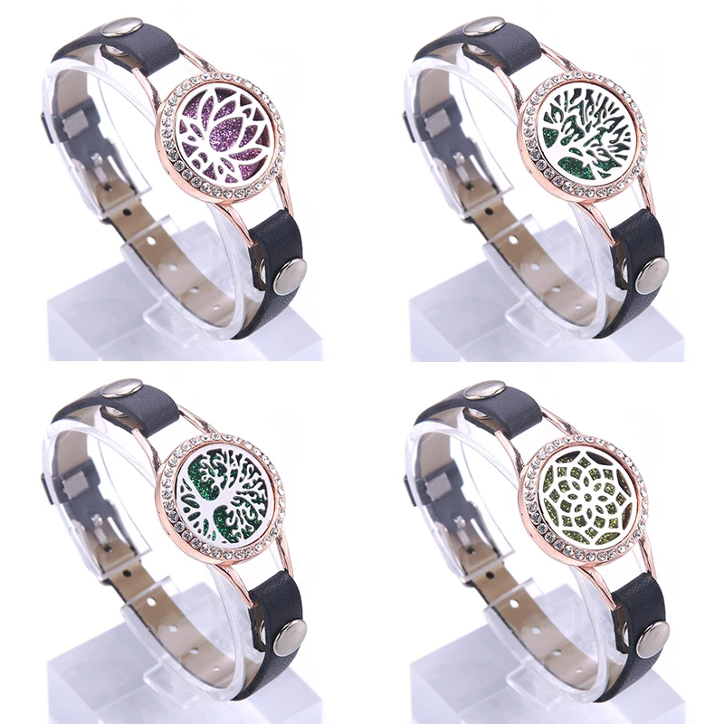 Лидер продаж 2021, новый браслет в виде лотоса и бабочки, искусственный браслет, кожаные браслеты с медальонами для духов, подходят для женщин
