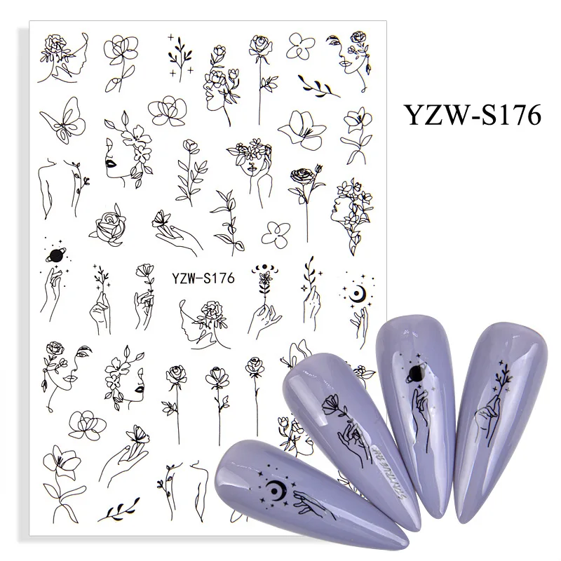 3D наклейки для ногтей, летние самоклеющиеся наклейки, цветы, линия...