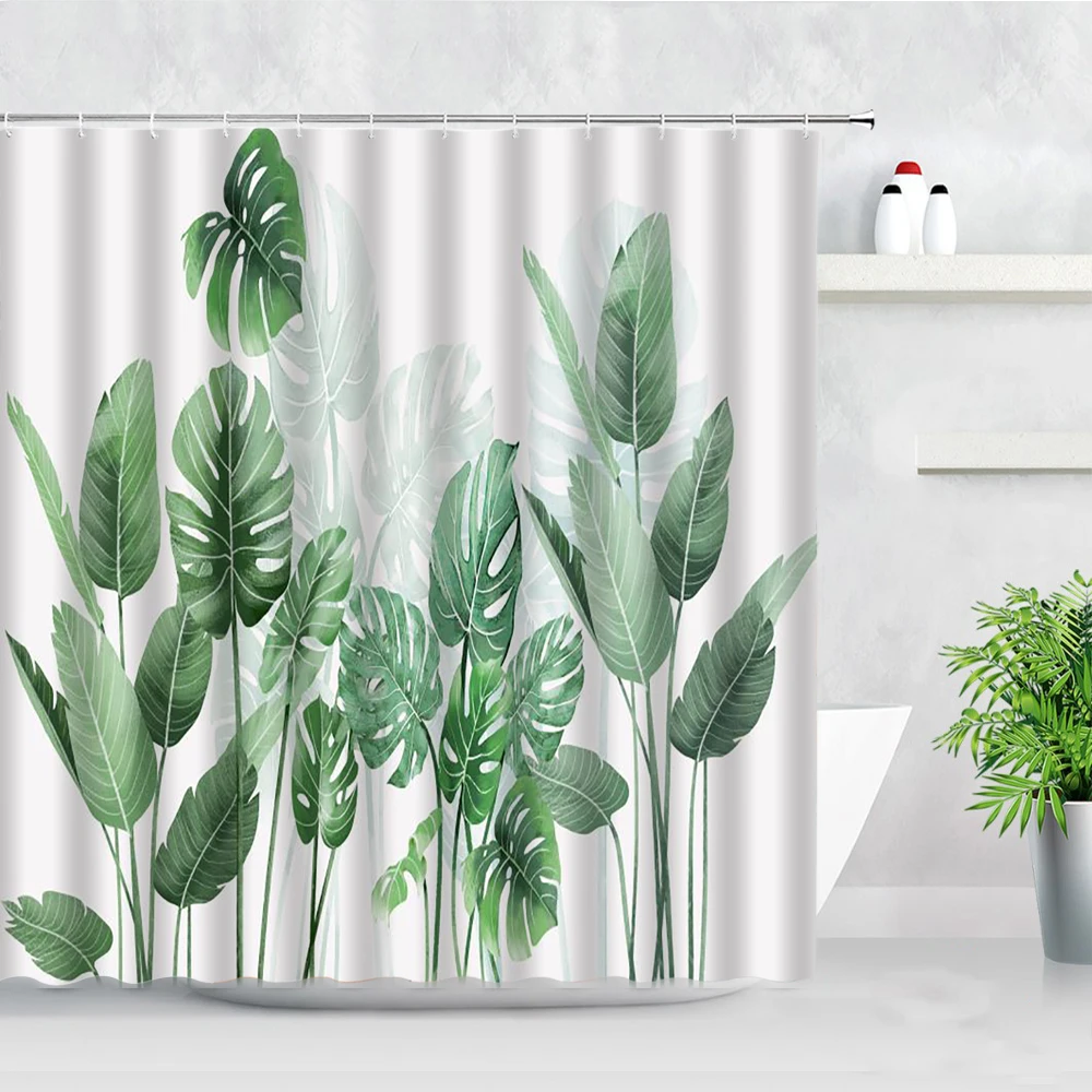 Занавеска для душа, водостойкая, с изображением цветов, растений