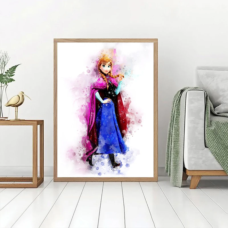 Акварель Дисней мультфильм принцесса печать на стене искусство Эльз...
