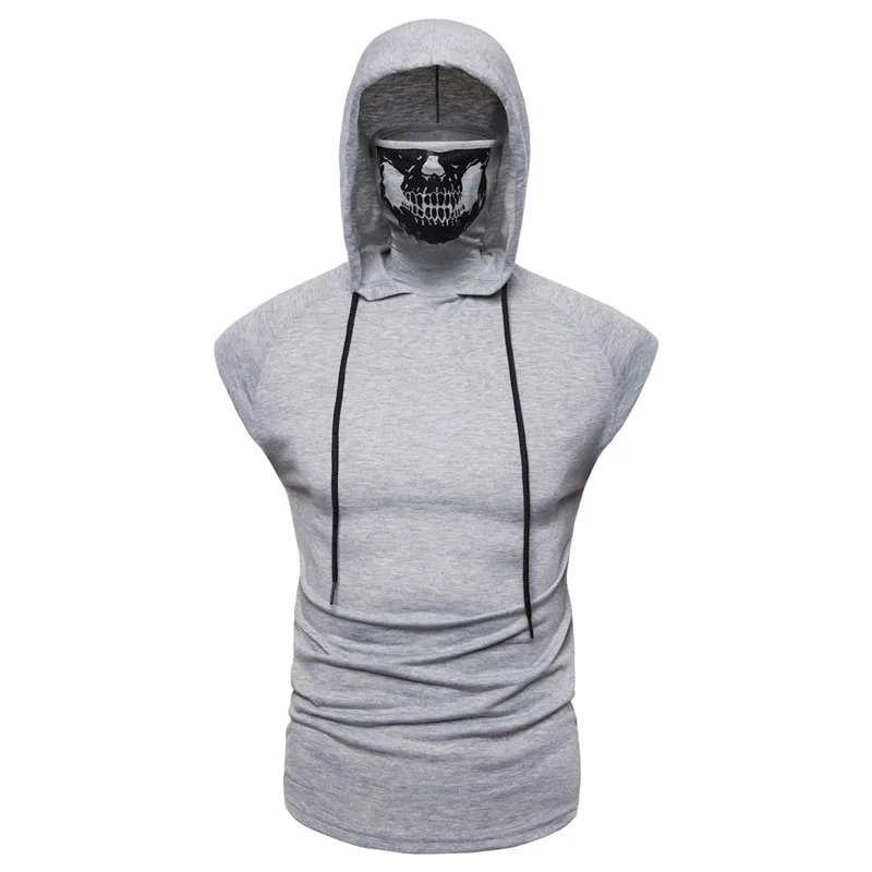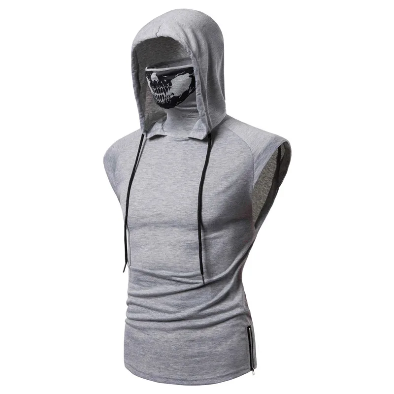 Худи мужское тонкое для спортзала, худи без рукавов с маской