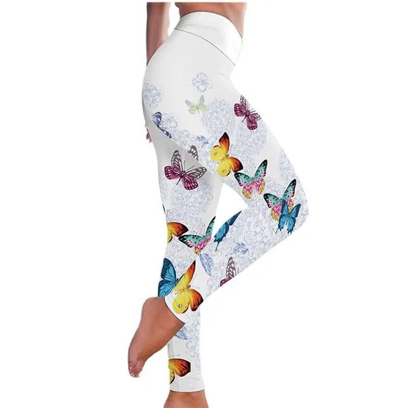 Штаны для йоги с принтом бабочки женские спортивные штаны для фитнеса женские брюки белые колготки с цветами буквами