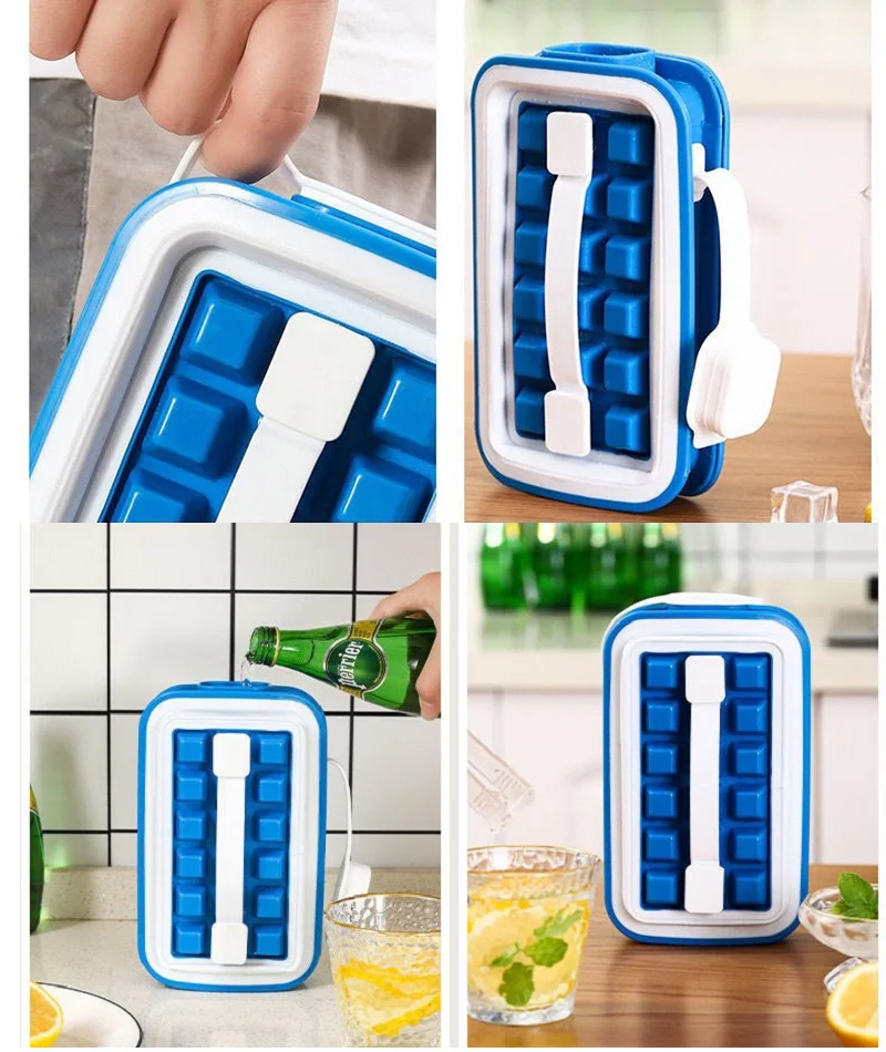 Folding Ice Tray Silicone Ice Box2-in-1 Ice Box Mould Fold Drink Hockey Frozen-ice Cube Mold