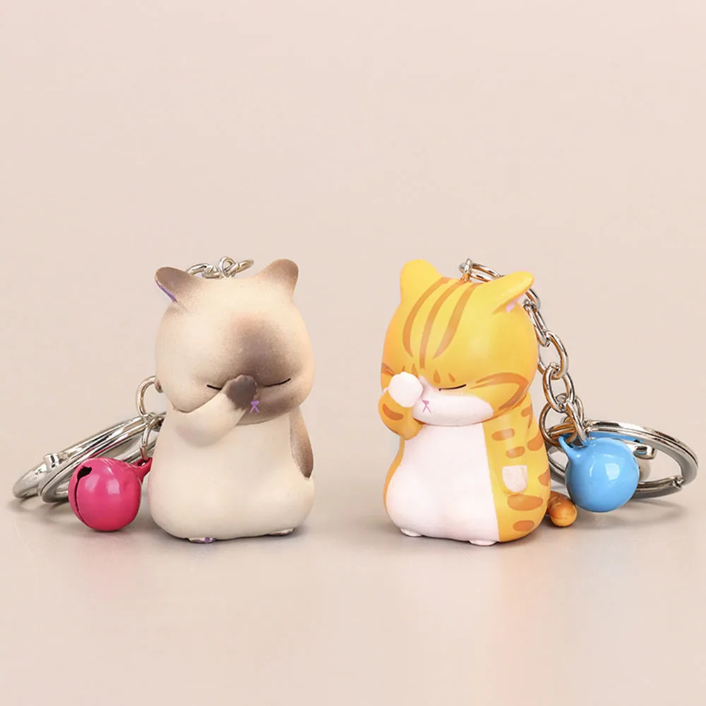 Милый брелок для мужчин и женщин смолы робкая кошка фигурка брелок ...