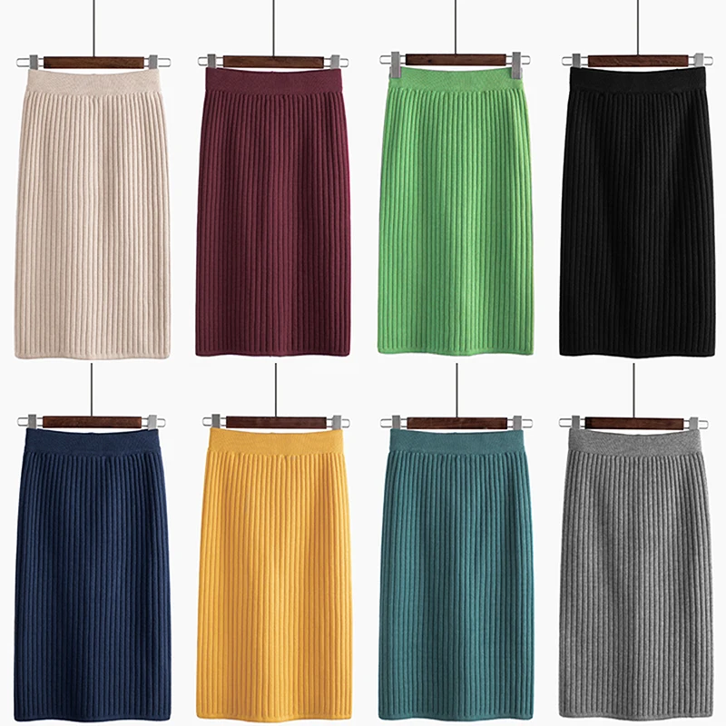 9 видов цветов юбки 2021 женские зимние однотонные сапоги Вязание Вышивка крестом пакет Хип карандаш миди юбки осенние женские офисные юбки Bodycon Femininas