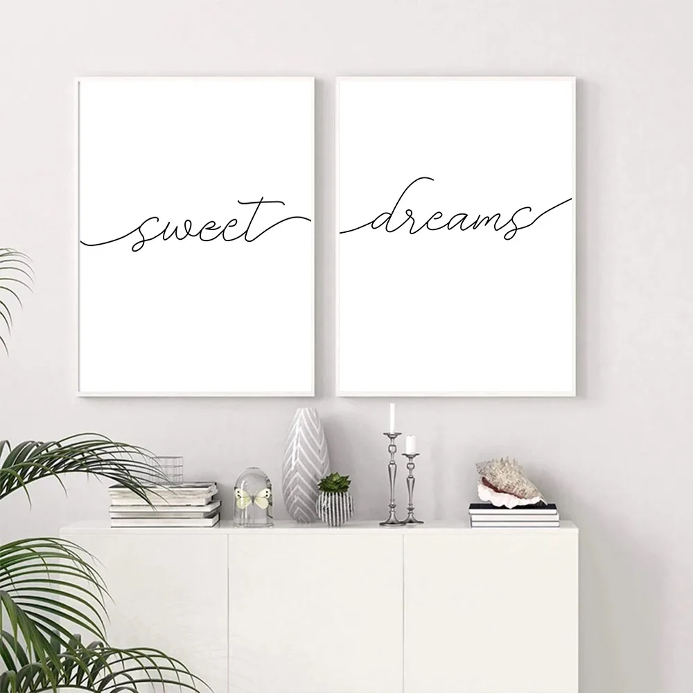 Скандинавская Милая мечта, цитаты, настенный художественный плакат и печать, черно-белая Картина на холсте, Минималистичная картина, современный декор для гостиной и дома