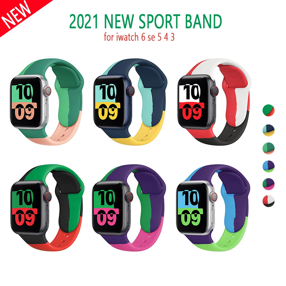 Ремешок силиконовый для Apple Watch Band 40 мм 44 мм, 2021 цветов, ...
