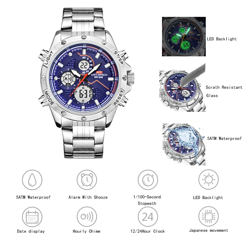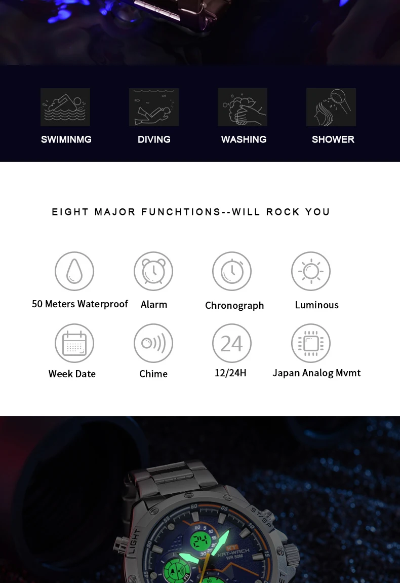 Новинка 2021, спортивные модные мужские электронные часы из нержавеющей стали, брендовые многофункциональные кварцевые цифровые часы, яркие ручные часы