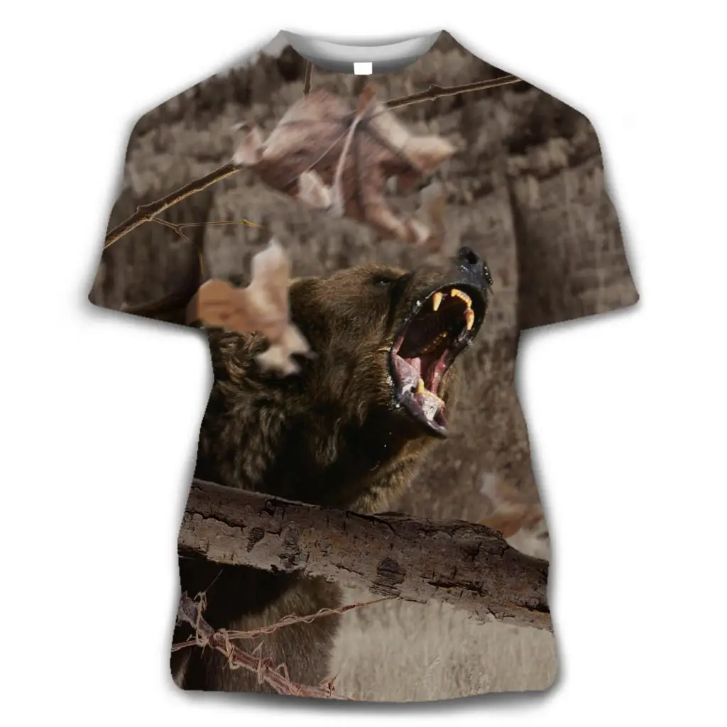 2021 камуфляжная Мужская футболка с 3D принтом леса охоты животных модная летняя футболка унисекс оверсайз с коротким рукавом и круглым вырезом