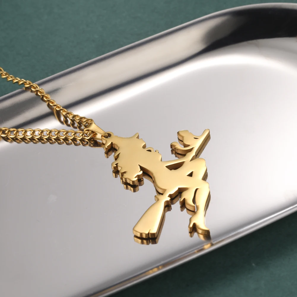 Женское колье в форме кота ведьмы из нержавеющей стали, винтажное ожерелье с подвеской в виде ведьмы, подарок на Хэллоуин