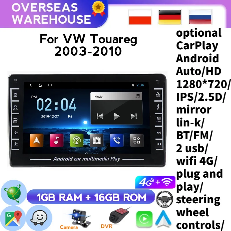 Автомобильный DVD-плеер с GPS для VWVolkswagenTouaregTransporter T5, 1 ГБ, 16 ГБ, 2 Din