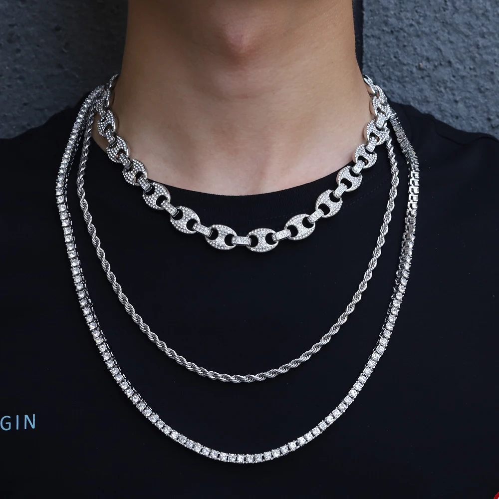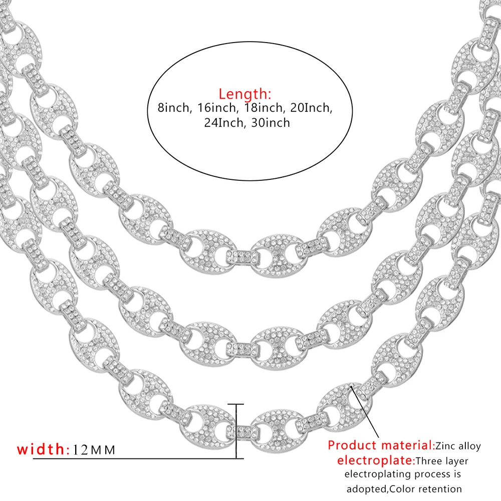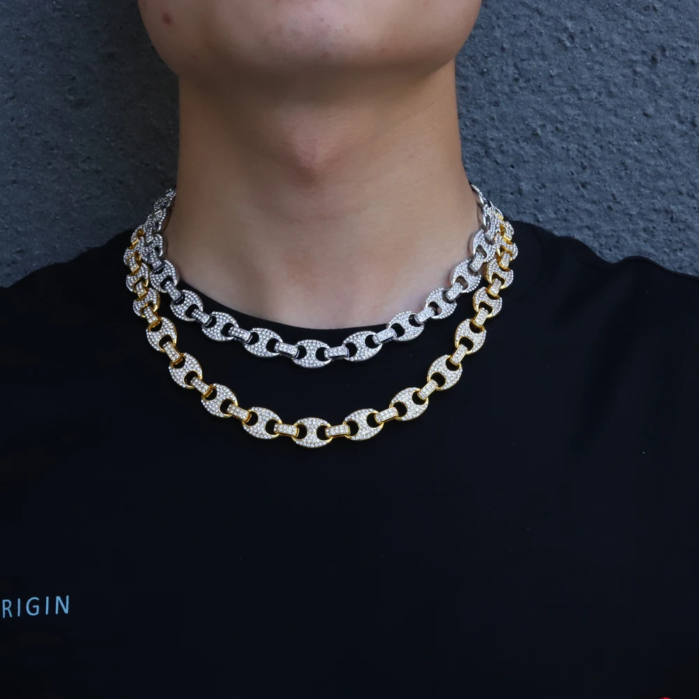 Цепочка мужская из кубинской цепи, ожерелье в стиле хип-хоп, украшение в виде свиньи, носа, стразы, шарм, звено, цепь, сверкающее ювелирное изделие