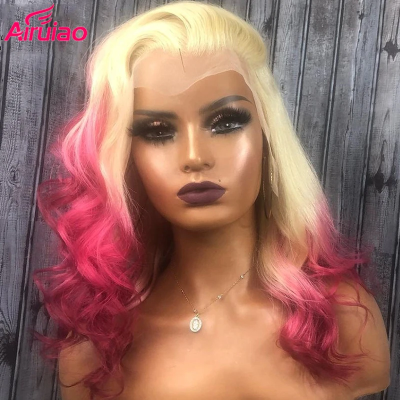 Парик 613 блонд с волнистыми волосами Омбре, парик из человеческих волос HD, прозрачные фронтальные розовые цветные парики для женщин, предварительно выщипанные, без клея