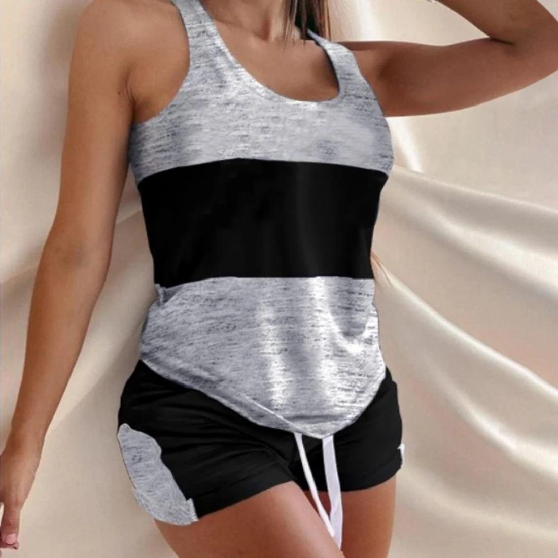 Характеристика: короткие шорты rucken ärmelloes kordelzug frauen anzugМатериал: полиэстерFarbe: Rosa schwarz grau, grau + schwarz, Grau Rosa Weiß, Леопардовый принт, Liebe briefAnwendbare gelegenheiten: geeignet für familie, hotel, innen und anderen orten.Paket beinhaltet: EIN stück von hause tragen