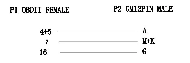 1. Кабель предназначен для 12-контактного штекерного разъема GM & Daewoo в 16-контактный гнездовой разъем OBD2.