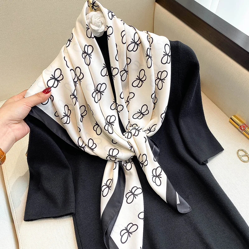 Женский шелковый шарф 90*90 см, квадратный фирменный платок для офиса, работниц отеля, официанток, стюардесс, кольца
