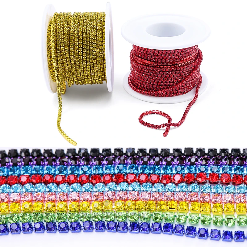 Цепочка для Стразы 2 ярда, однотонная стеклянная блестящая Хрустальная отделка для украшения рукоделия, аксессуары для рукоделия, стразы для рукоделия