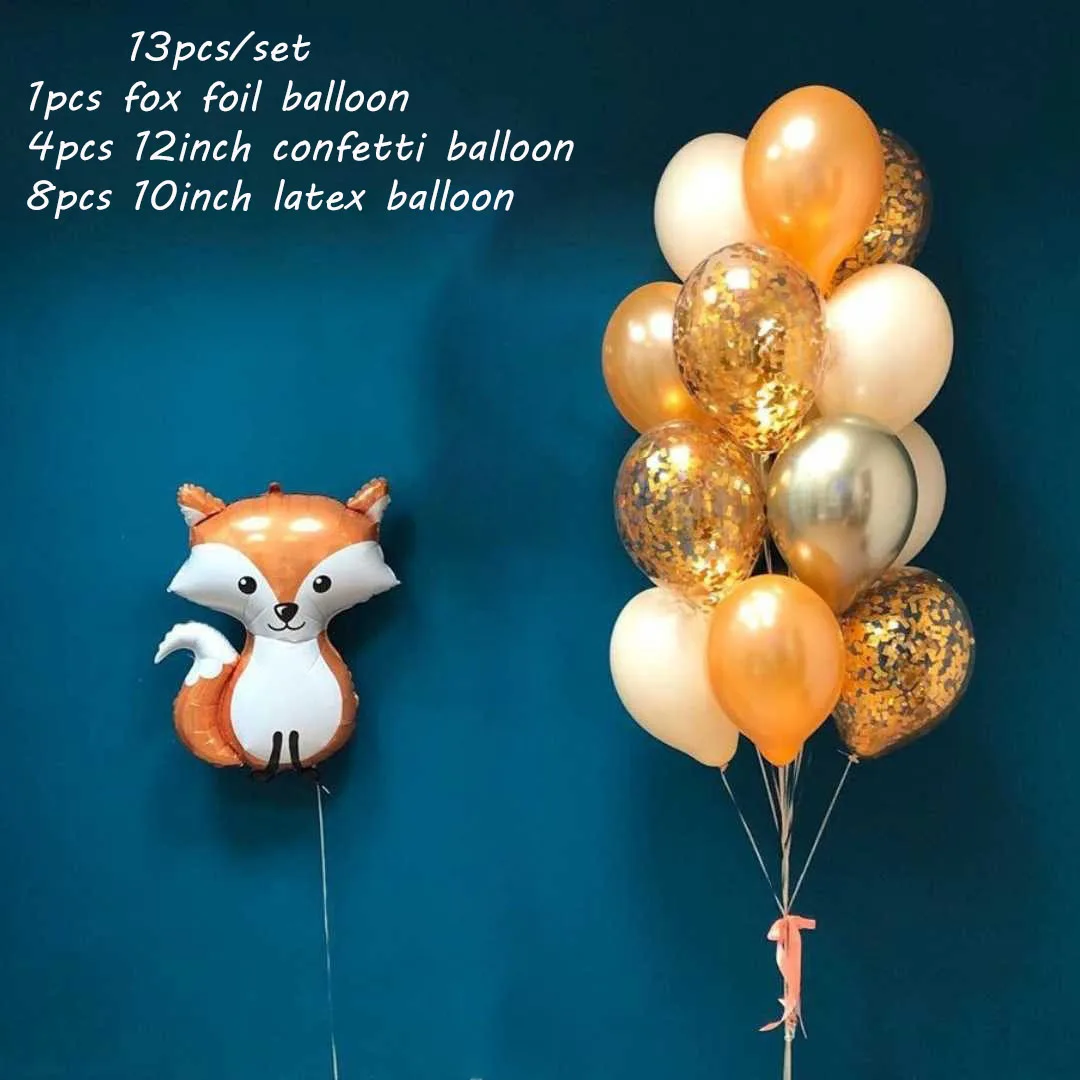 Животные из мультфильмов лиса енот Фольга воздушные шары для детей с днем рождения для вечеринки в стиле сафари украшения Звездный конфетти гелиевые шары детского дня рождения