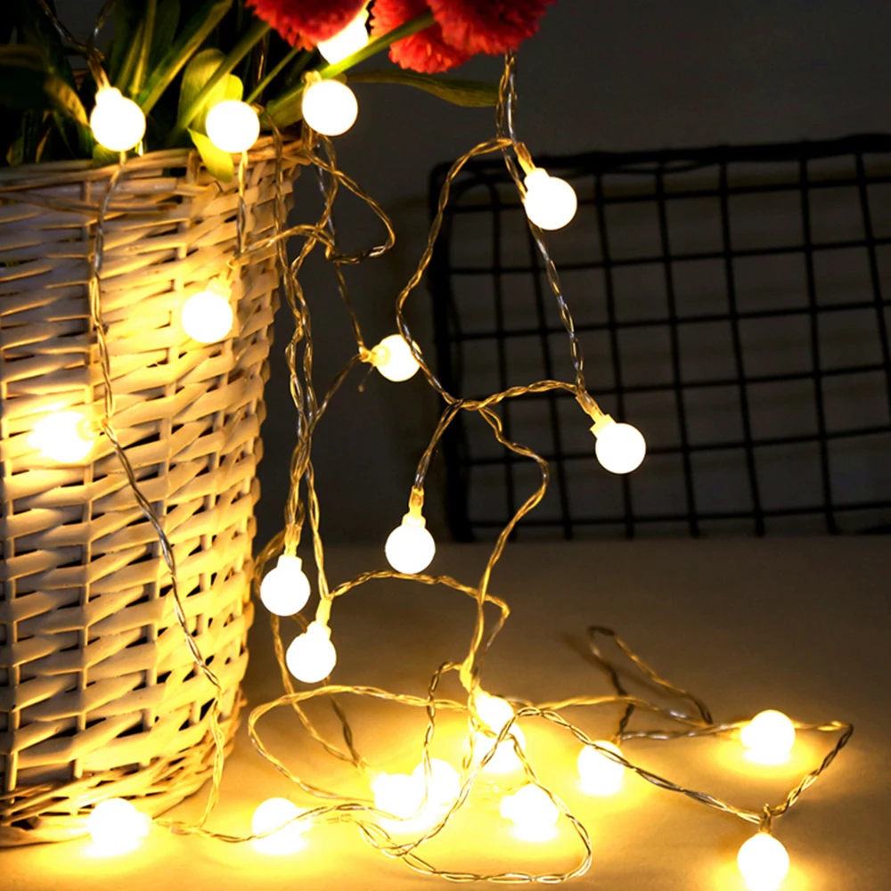 Гирлянда со светодиодными круглыми лампочками, Рождественская лампо...