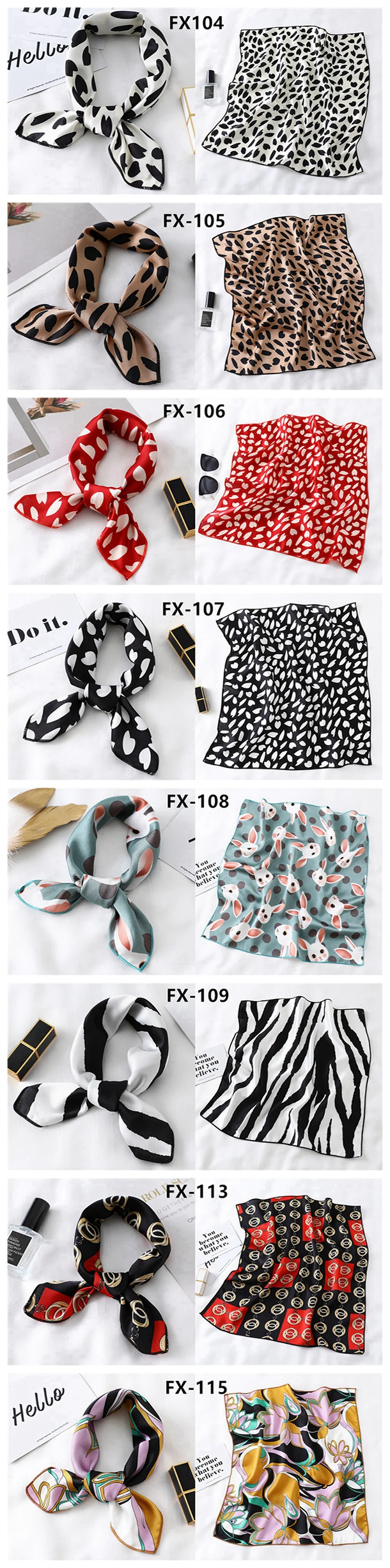 Шелковый шарф с принтом Женский, модный шейный платок квадратной формы, небольшой шейный платок, офисный платок, Женская бандана, шаль, 2021