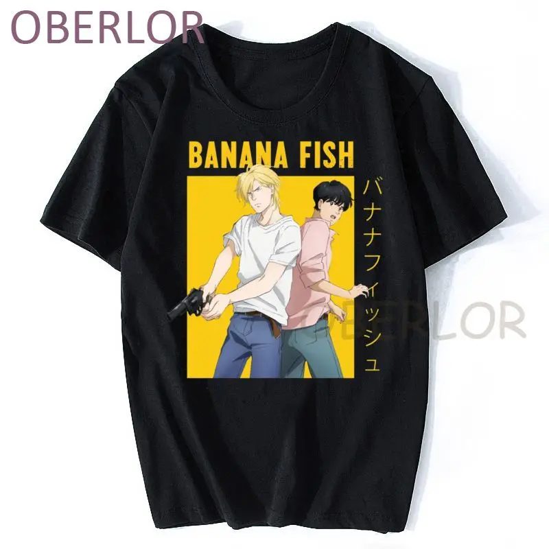 Модная футболка в стиле японского аниме ASH X EIJI, летние топы с коротким рукавом, манга, банан, рыба, размера плюс, Летняя женская одежда