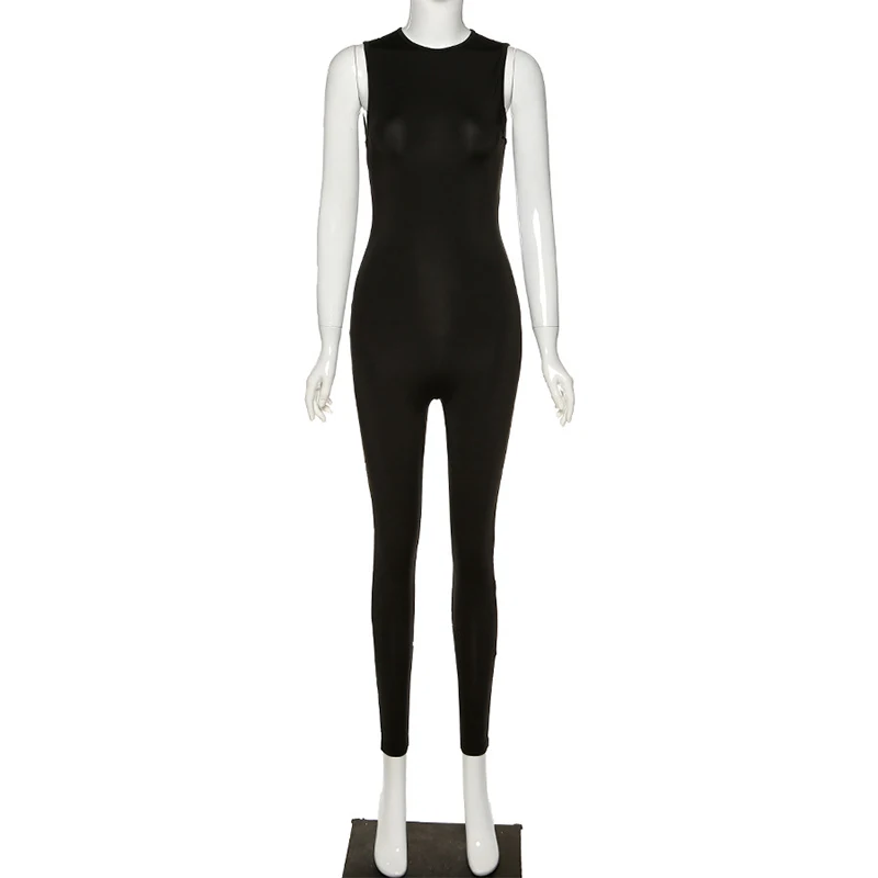 Комбинезон женский без рукавов, облегающий спортивный однотонный ко...