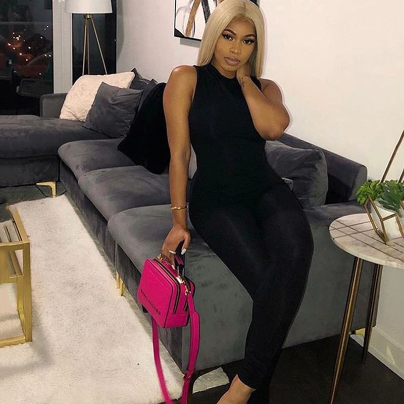 2020 Новый женский комбинезон без рукавов Bodycon спортивный костюм...