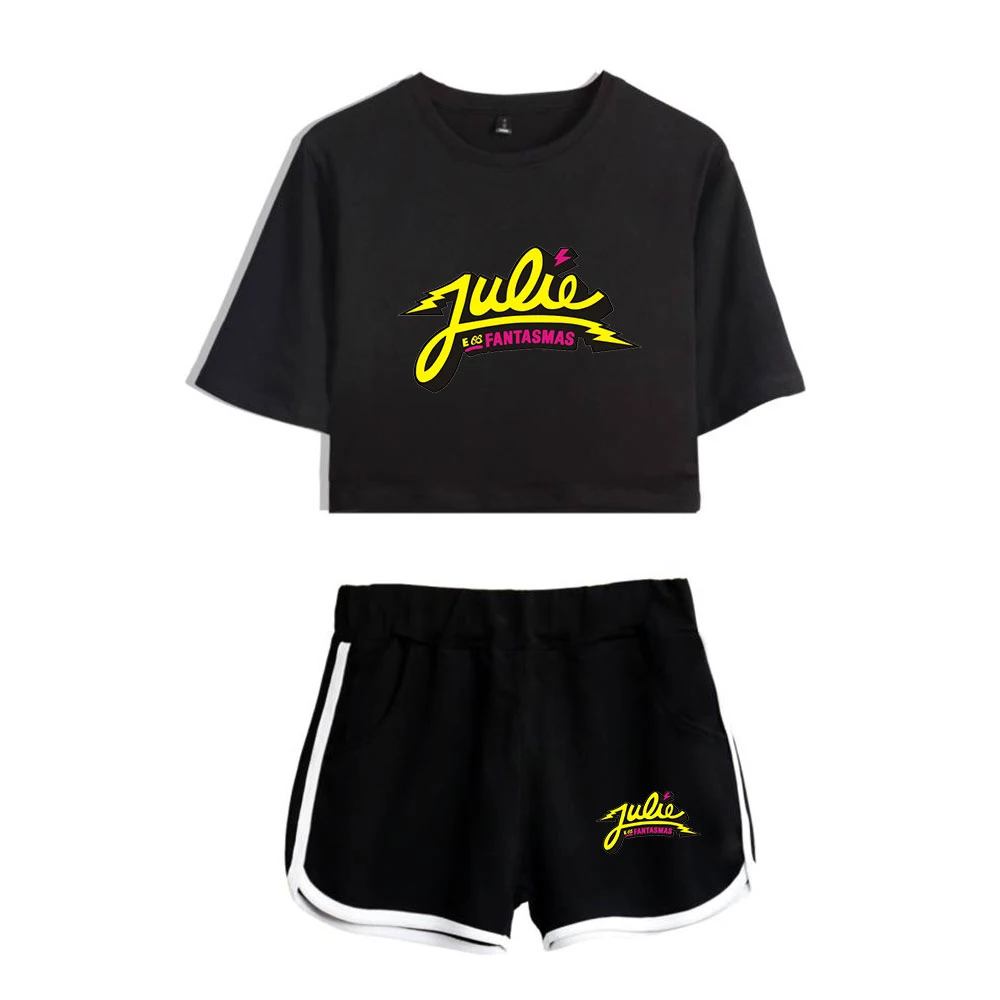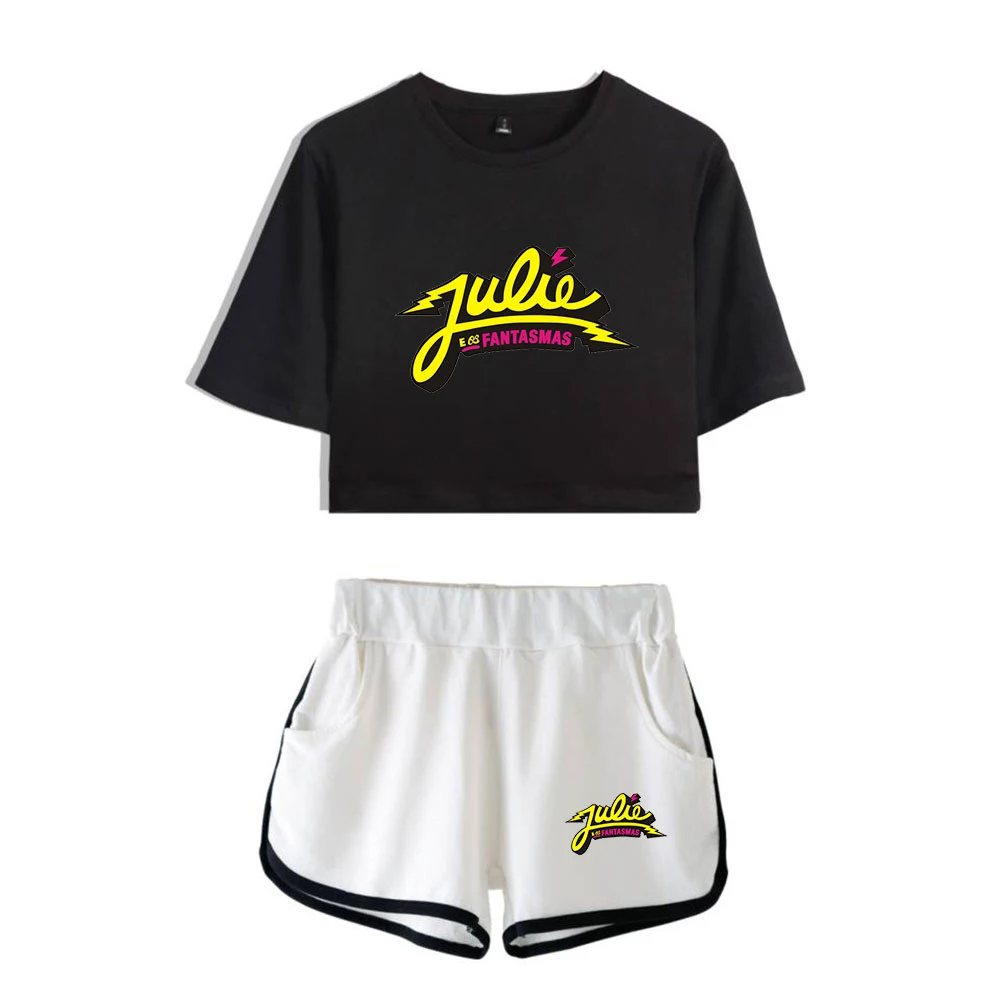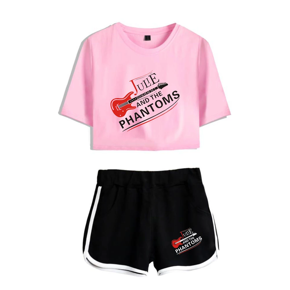 Модный костюм футболки Julie and the Phantoms, Женский комплект из двух предметов, летний короткий топ с коротким рукавом + шорты, сексуальные футболки для девочек