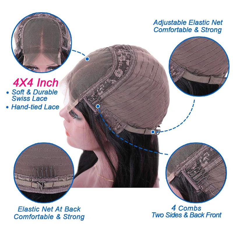 Парик из натуральных волос, 30 дюймов, 4 х4 дюйма, плотность 150