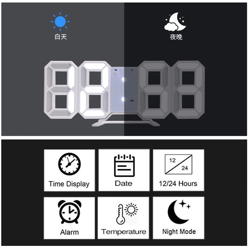 5. 2 режима установки, повесить на стену или поставить на стол. Светодиодные часы должны быть подключены. Вы можете спрятать кабель питания за некоторыми предметами или в стену, это будет красивее для украшения вашего дома.