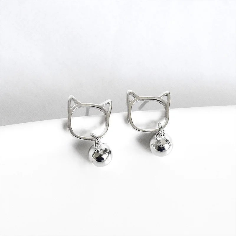 Маленькие серьги-гвоздики LKO из чистого серебра 925 пробы с кошачьим колокольчиком для девочек, милые женские украшения для девочек, подарки, украшения