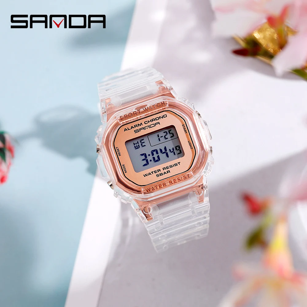 Часы наручные SANDA мужскиеженские электронные, модные спортивные светодиодные цифровые водонепроницаемые с прозрачным ремешком