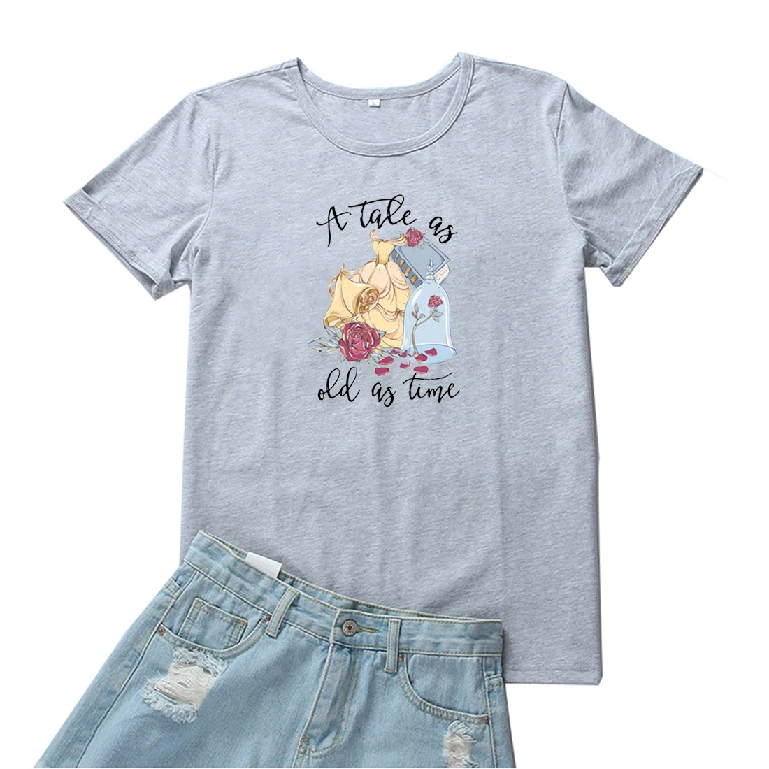 Сказка стара как мир Женская забавная футболка с рисунком, футболка из хлопка с коротким рукавом футболки для девочек в винтажном стиле; Уличная женская футболка