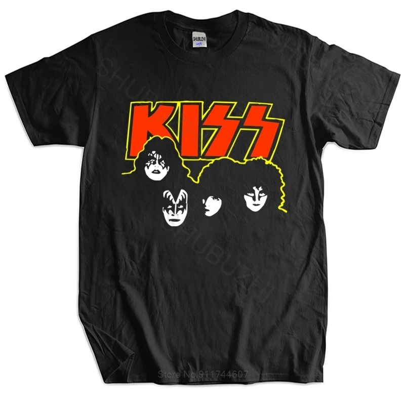 Футболка мужская хлопковая, черная, винтажная, с принтом в стиле 80-х, с редкой рок-группой, футболка поцелуй