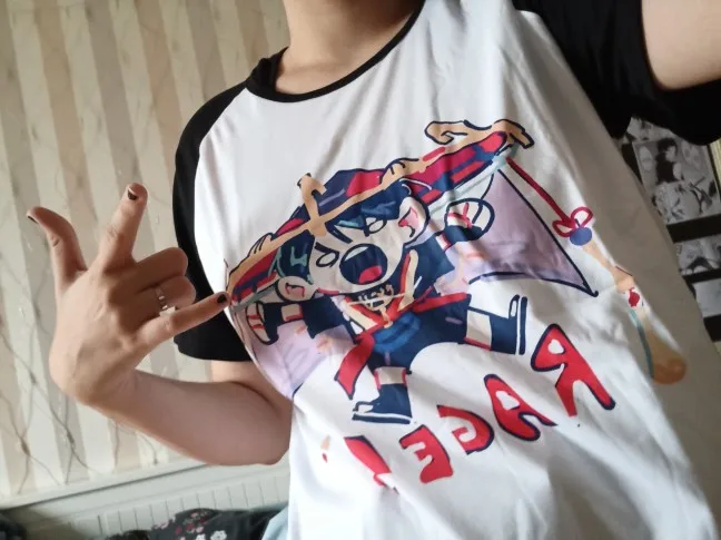 Пришла футболка быстро, раньше объявленного срока, с продавцом общаться не приходилось. Материал тонкий, не натуральный, но мягкий и приятный к телу. Имейте ввиду, что темное белье не надеть, просвечивает. Принт напечатан, не наклейка. Села хорошо, брала на свой xs-s размер m , как я и хотела, она пришла больше, как я хотела.