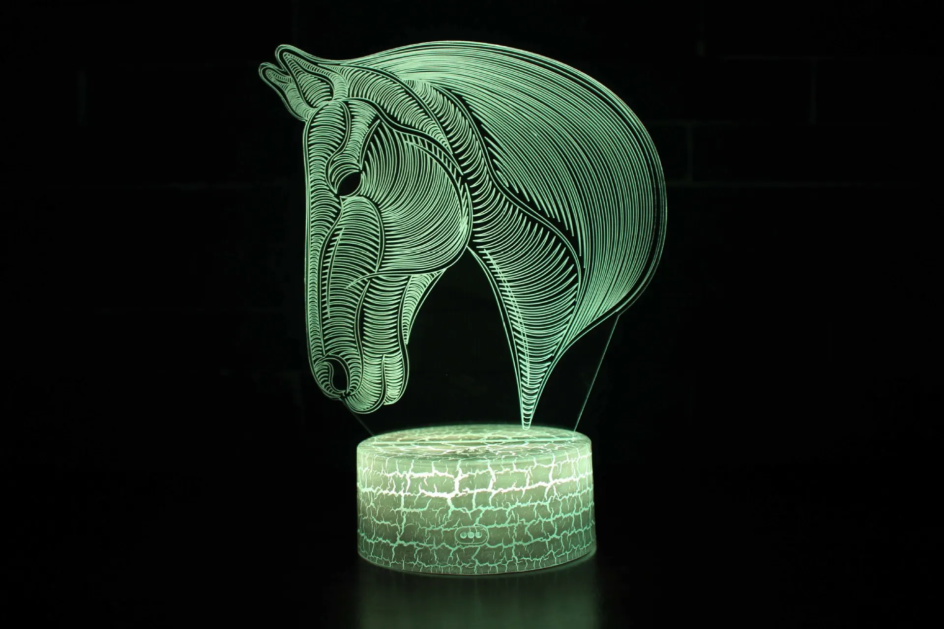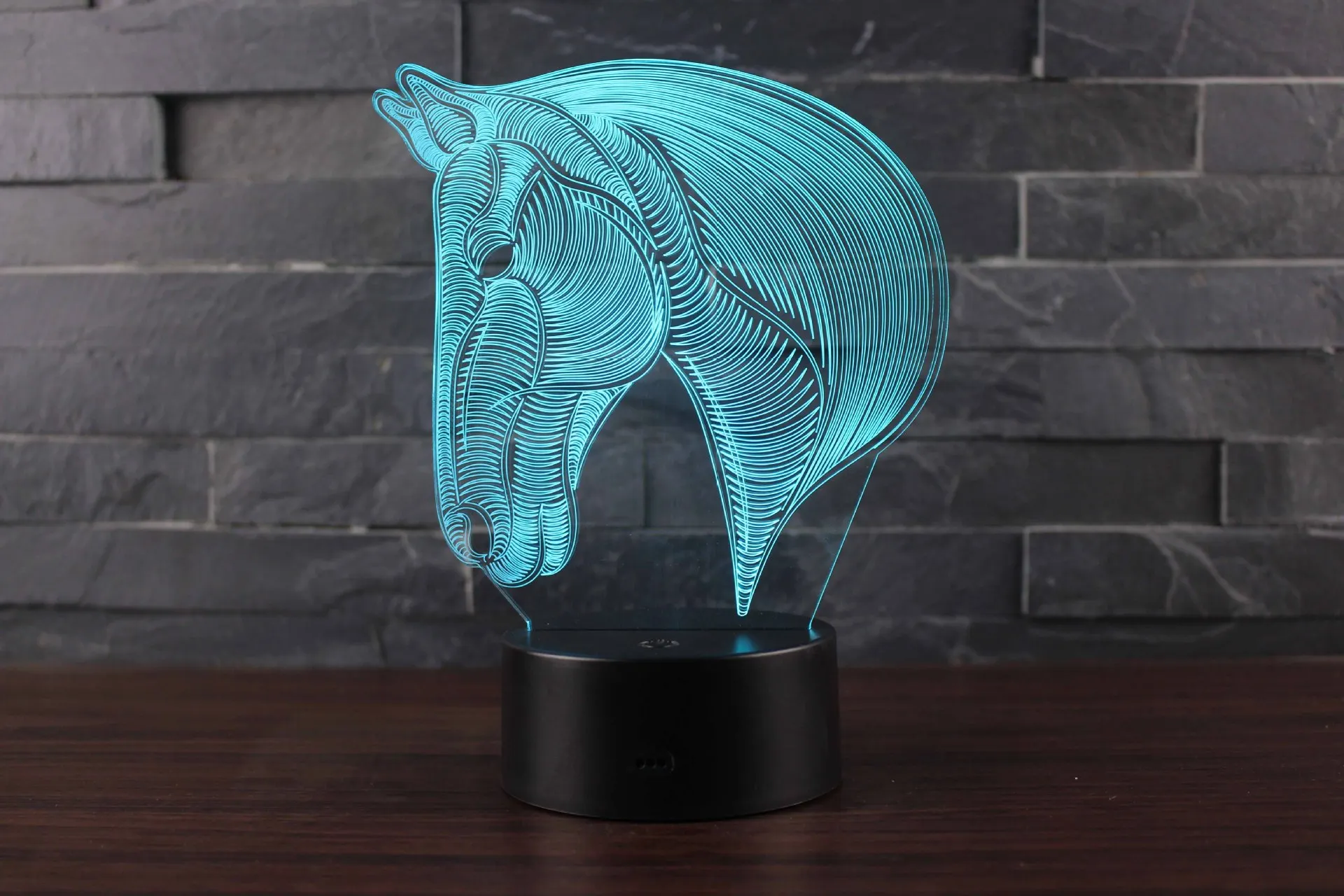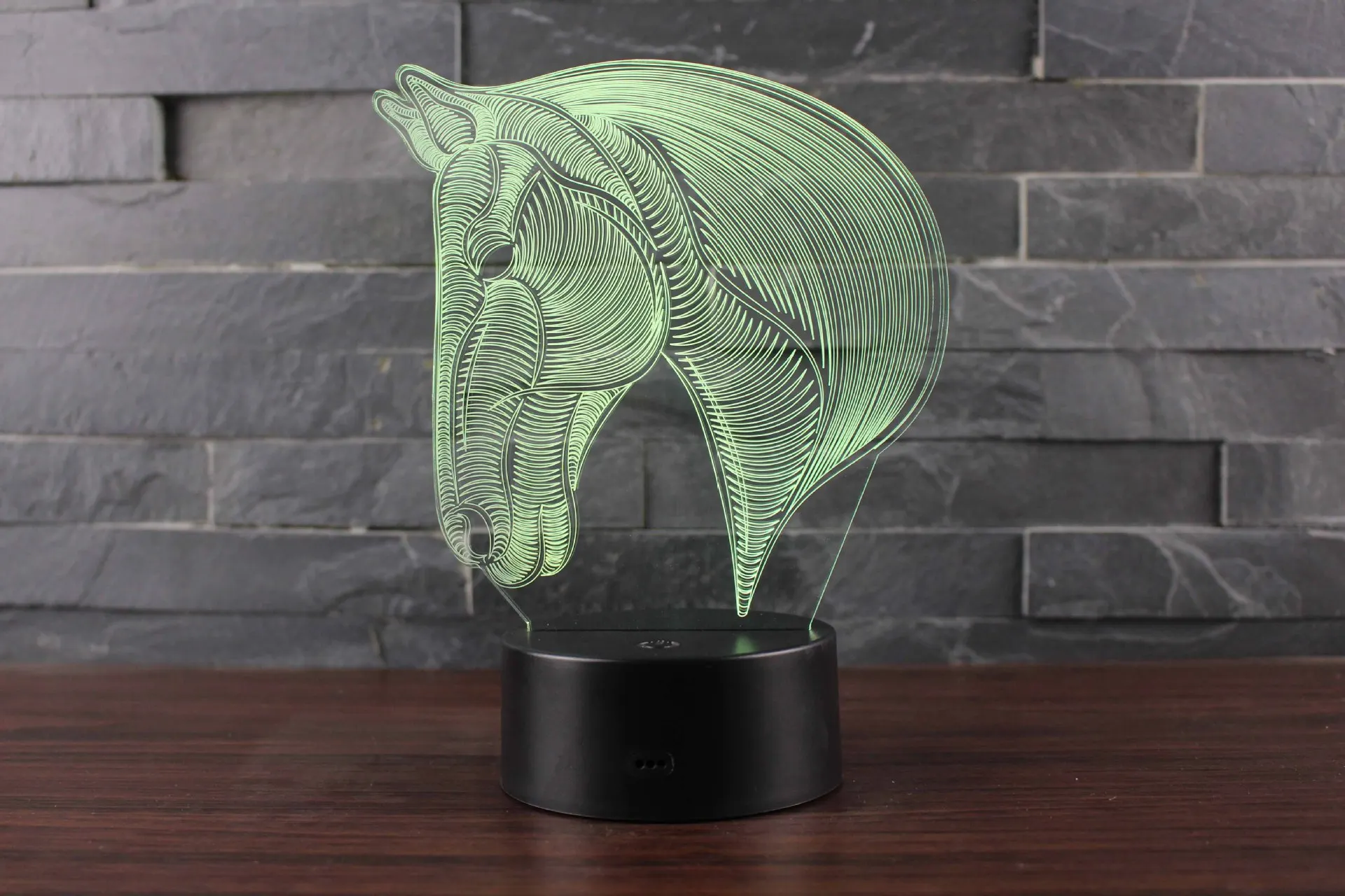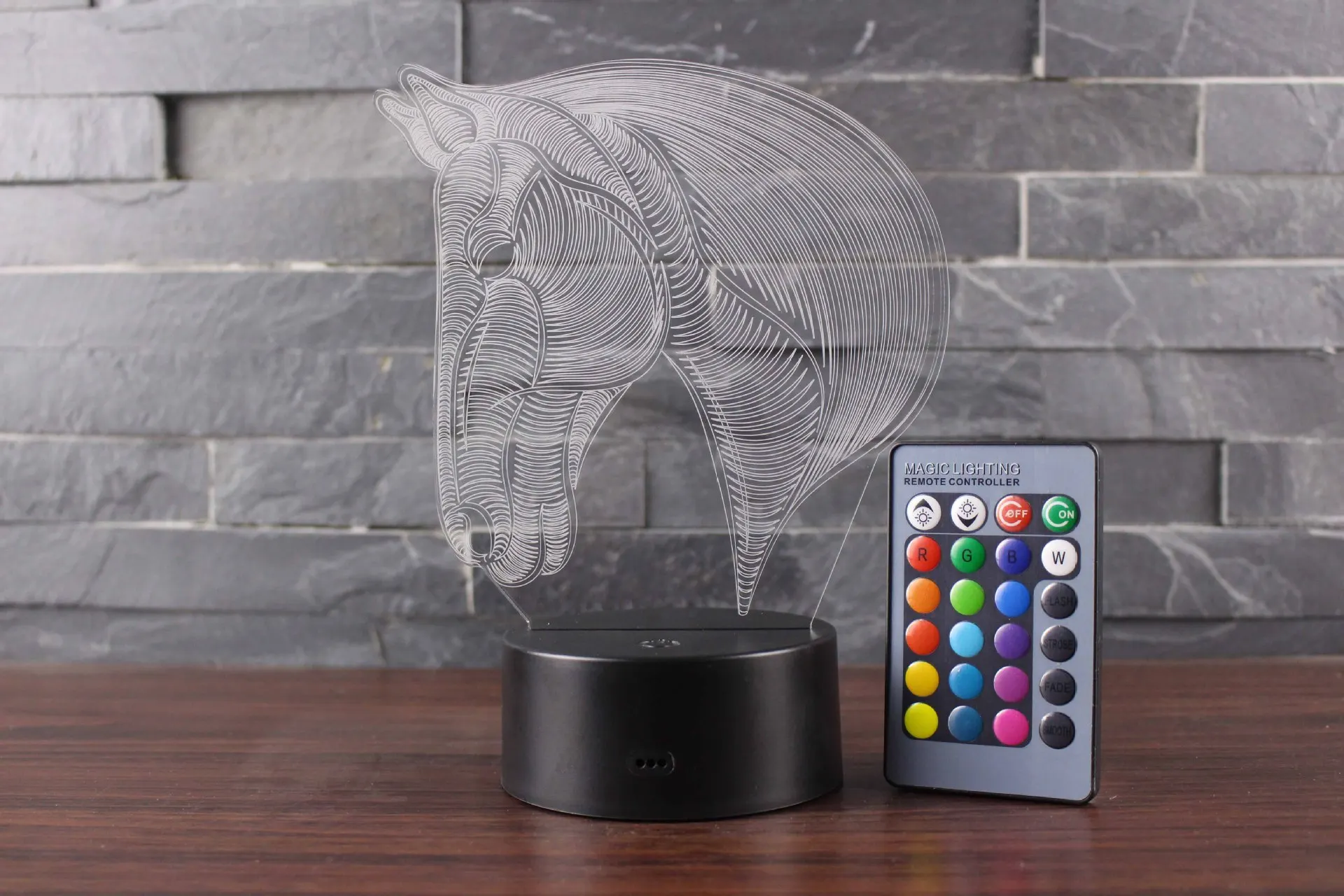 Ночник в виде лошади с 3D иллюзией, 7 цветов, светодиодная изменяюсветодиодный сенсорная Настольная лампа с дистанционным управлением и USB для домашнего декора, праздничные подарки