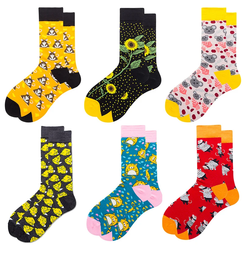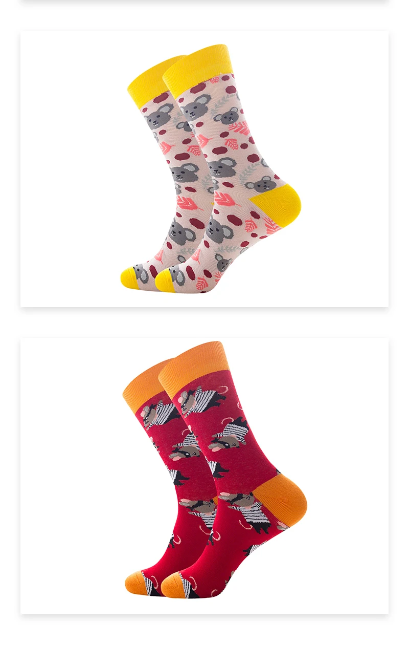 1 пара мужских носков из чесаного хлопка, Мультяшные животные, птиц...