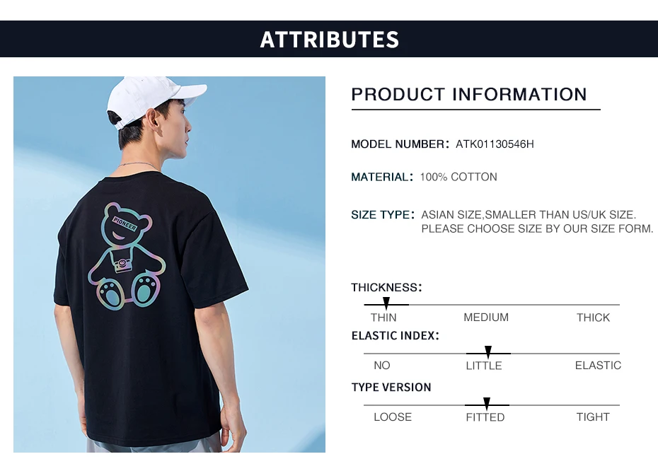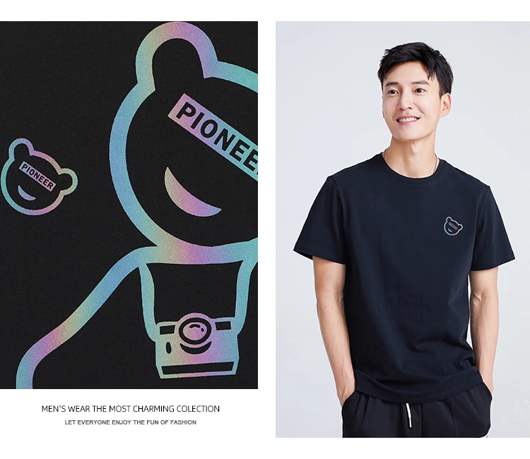 Футболка мужская Pioneer Camp ATK01130546H, 100% хлопок, Повседневная Свободная одежда с принтом медведя, лето