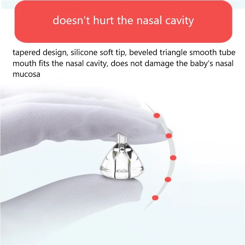2. Наконечник всасывания носа, который не повредит носовую Полость: Конический дизайн, мягкий силиконовый наконечник, скошенный треугольник, гладкая трубка, подходит для носовой полости, не повреждает носовую слизистую оболочку ребенка