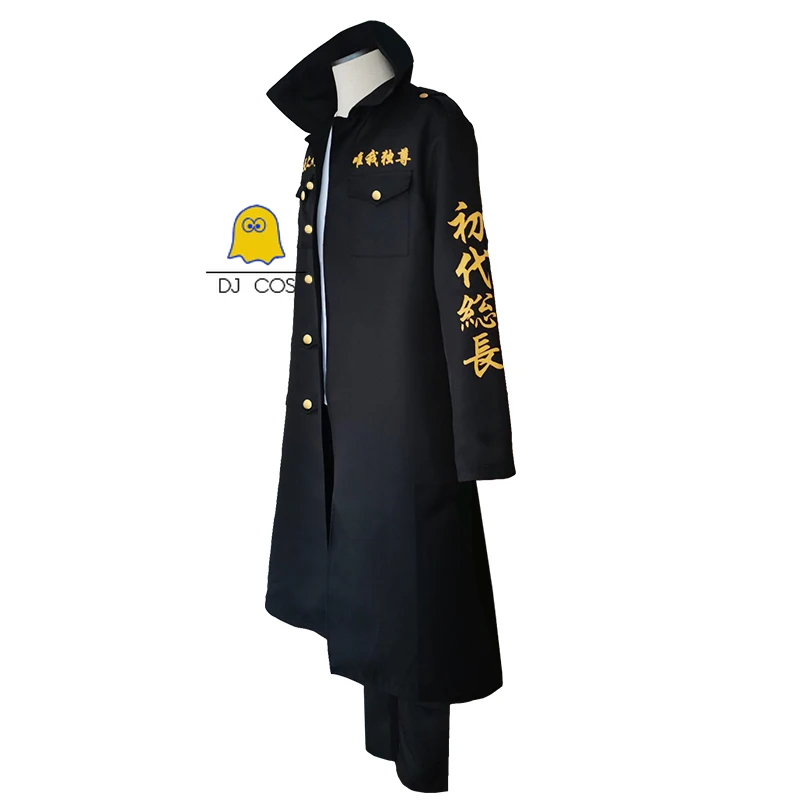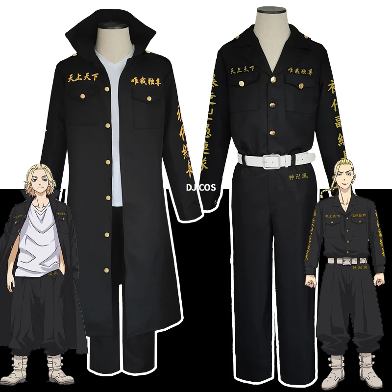 Черный костюм для косплея из аниме «Мстители Токио», Тренч, штаны, пояс, Хэллоуин, наряд-униформа