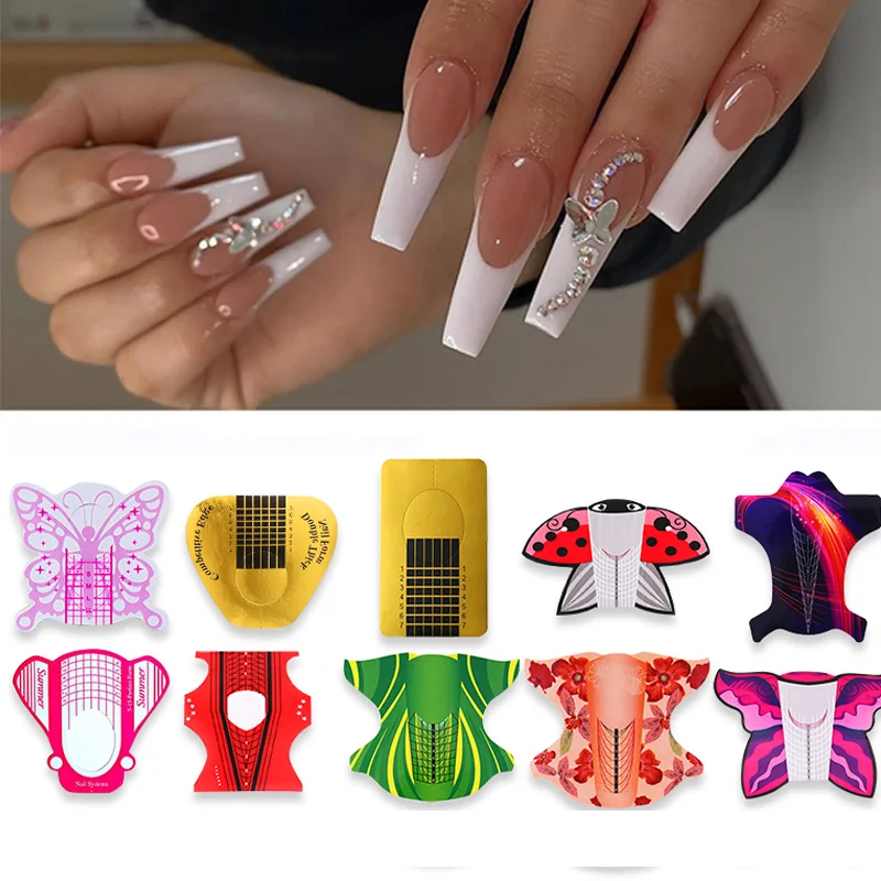 Формы для наращивания ногтей профессиональные для женщин, 20 шт., французские акриловые наклейки для маникюра